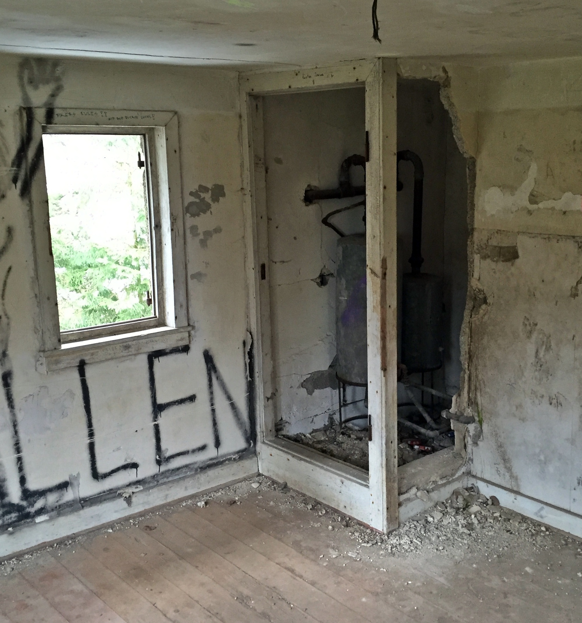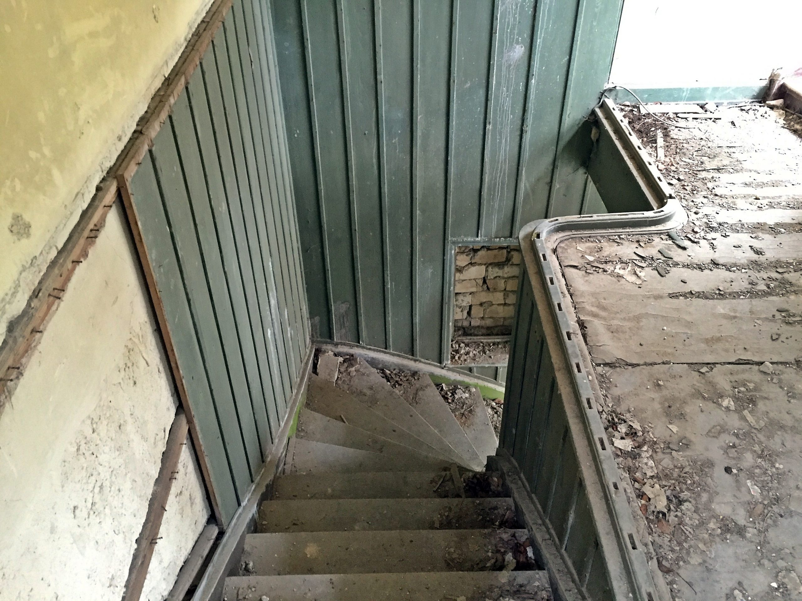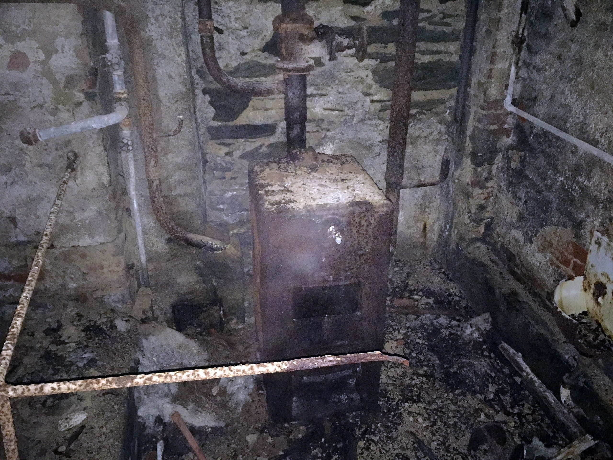 Bis auf den Turm ist das Gebäude leider schon eingestürzt. Im etwas gruseligen Keller finden sich Reste der Heizung und Warmwasseraufbereitung. Diese war für die damalige Zeit und die abgelegene Location bereits auf einem sehr modernen Stand. Die Zufahrt des Anwesens endete Früher in der Garage wo auch ein Werkstatt-Graben vorhanden ist um Fahrzeuge reparieren zu können.