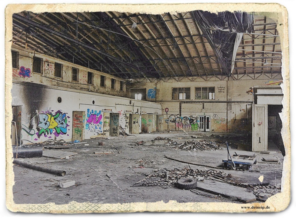 Der Flughafen wurde von der Luftwaffe im zweiten Weltkrieg hauptsächlich für Lastensegler genutzt und gegen Kriegsende von den Amerikanern bombardiert und später durch Bodentruppen eingenommen. 1991 zogen die letzten US-Army Truppen im Zuge des Golfkrieges ab. Danach nutze die Telekom noch einen Teil der Gebäude weiter, bis der Standort schließlich verlassen wurde und seitdem brach liegt. In der Bevölkerung kursiert die ein oder andere Legende über noch unentdeckte oder geheime unterirdische Flugzeughallen und Anlagen. Auch das macht natürlich einen Teil der Faszination dieses Ortes aus. Die Bausubstanz ist teilweise neueren Datums (vmtl. noch durch die Telekom modernisiert) und teilweise noch aus Kriegszeiten (Dachkonstruktion der Hangargebäude). Das ganze Ensemble würde jedenfalls ein Super Set für eine Folge Walking Dead abgeben…
