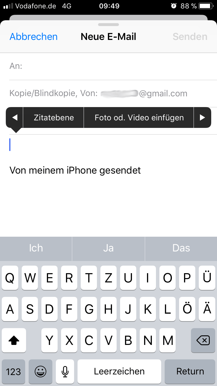 Bis iOS 5 gab es nur den Weg erst ein Bild zu öffnen und es dann über die entsprechende Funktion per Email zu versenden. Erst eine Email zu schreiben und dann Bilder anzufügen war nicht vorgesehen. Ab iOS 6 geht das aber, die Funktion ist allerdings etwas versteckt: