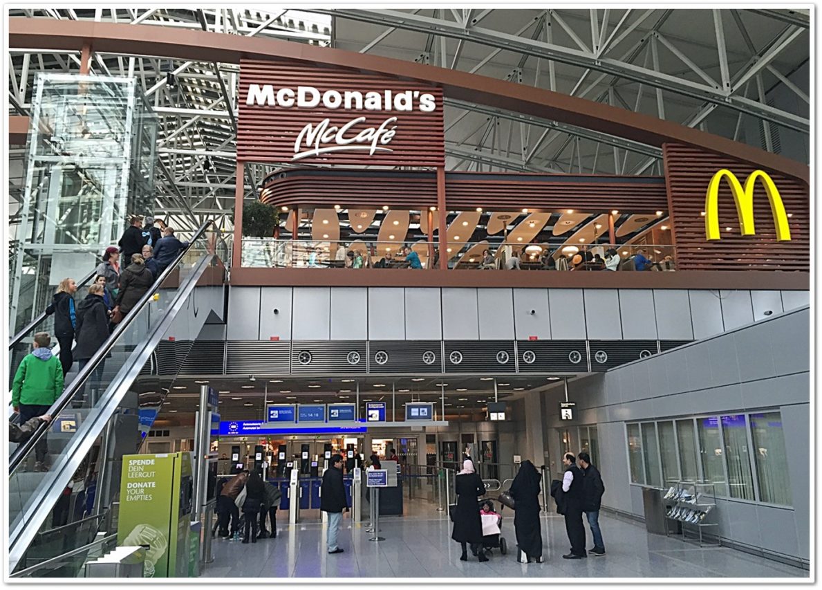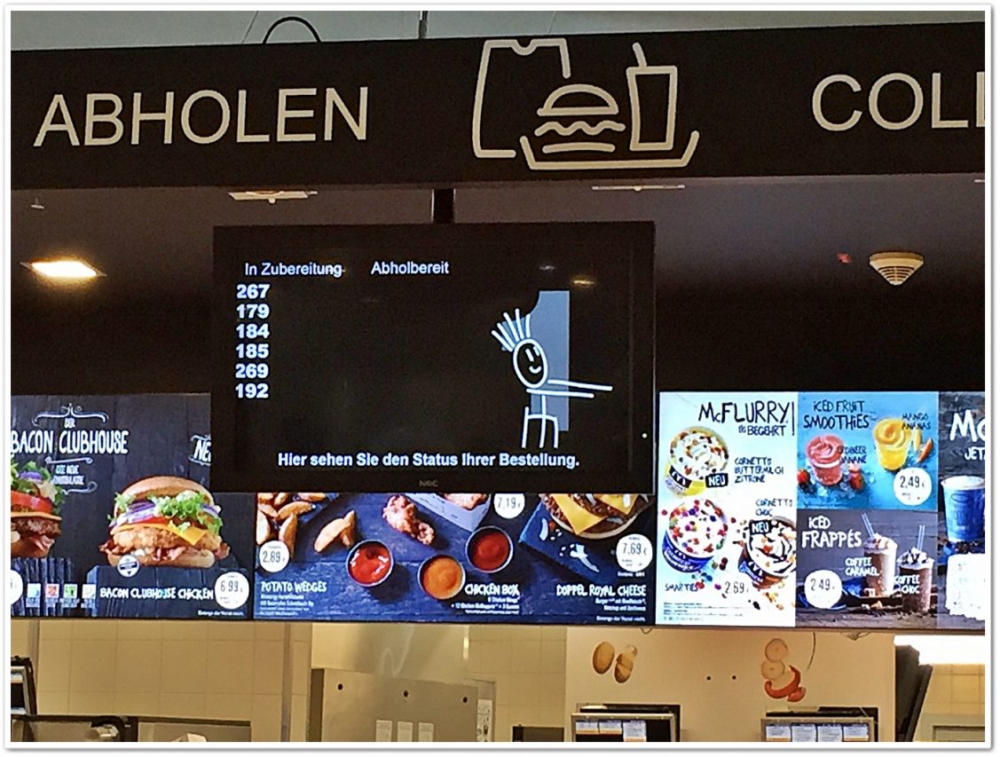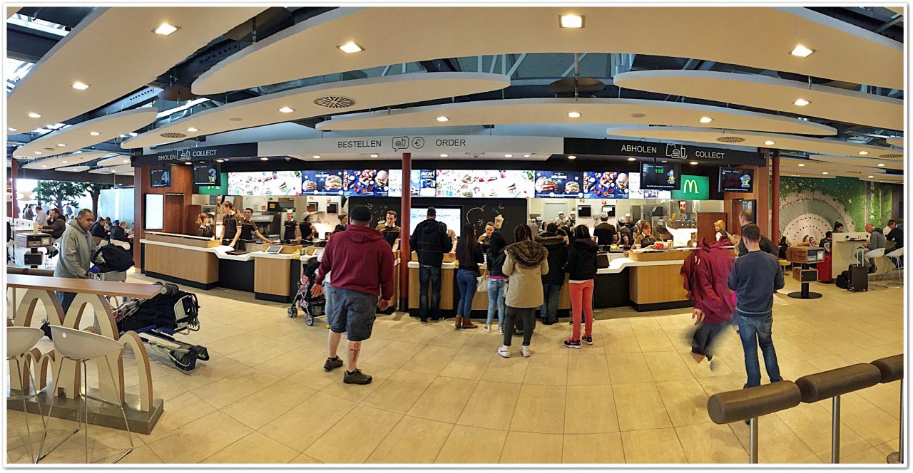 Letzten Samstag bin ich gaaanz zufällig beim, am 31.März wiedereröffneten McDonalds im Terminal 2 vorbeigekommen. Dort hat sich seit der Renovierung einiges getan und die Filiale soll mit über 500 Sitzplätzen und einer Fläche von 2300 Quadratmetern der momentan größte McDonalds in Deutschland sein. Wirklich neu ist zum Beispiel der Welcome Desk. Dort wird man von einem Mitarbeiter begrüßt (Wers mag…) und es gibt einen ausgewiesenen Bereich mit Tisch Service. Dort gibt es Bedienung und der “Kellner” nimmt die Bestellungen mit einem Tablet auf.Überhaupt gibt es eine neue IT-Infrastruktur mit Ticketsystem und 3 Bestellmöglichkeiten. Entweder wie gewohnt am Counter, bei einem Mitarbeiter mit Tablet oder für Kartenzahler an einem Terminal mit Touchbedienung. Die eigene Bestellnummer kann dann an Monitoren verfolgt werden und man weiß, wann das eigene Essen am Tresen abzuholen ist.