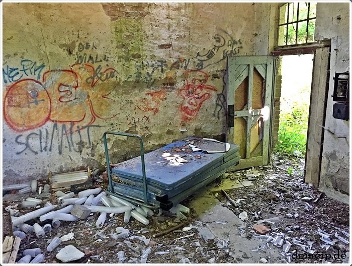 Auf einem Radausflug von Kelkheim nach Königstein bin ich spontan an diesem kleinen Haus am Ortsrand des Ortsteils Schneidhain vorbeigekommen. Leider ist es bereits ziemlich vandalisiert und das Gelände ist mit Bauschutt zugemüllt. Scheinbar hat hier mal jemand seine Festival- oder Konzertbecher Garnitur und einige Sporthallen-Matten entsorgt ? Sachen gibt’s! Das Gebäude besteht nur aus einem Raum mit anschließender Toilette und einem Duschraum. Es könnte sich um sowas wie ein ehemaliges Wärterhäuschen handeln. In der unmittelbaren Umgebung gibt es ein Gelände der Wasserversorgung, ggf. auch Abwasserentsorgung.