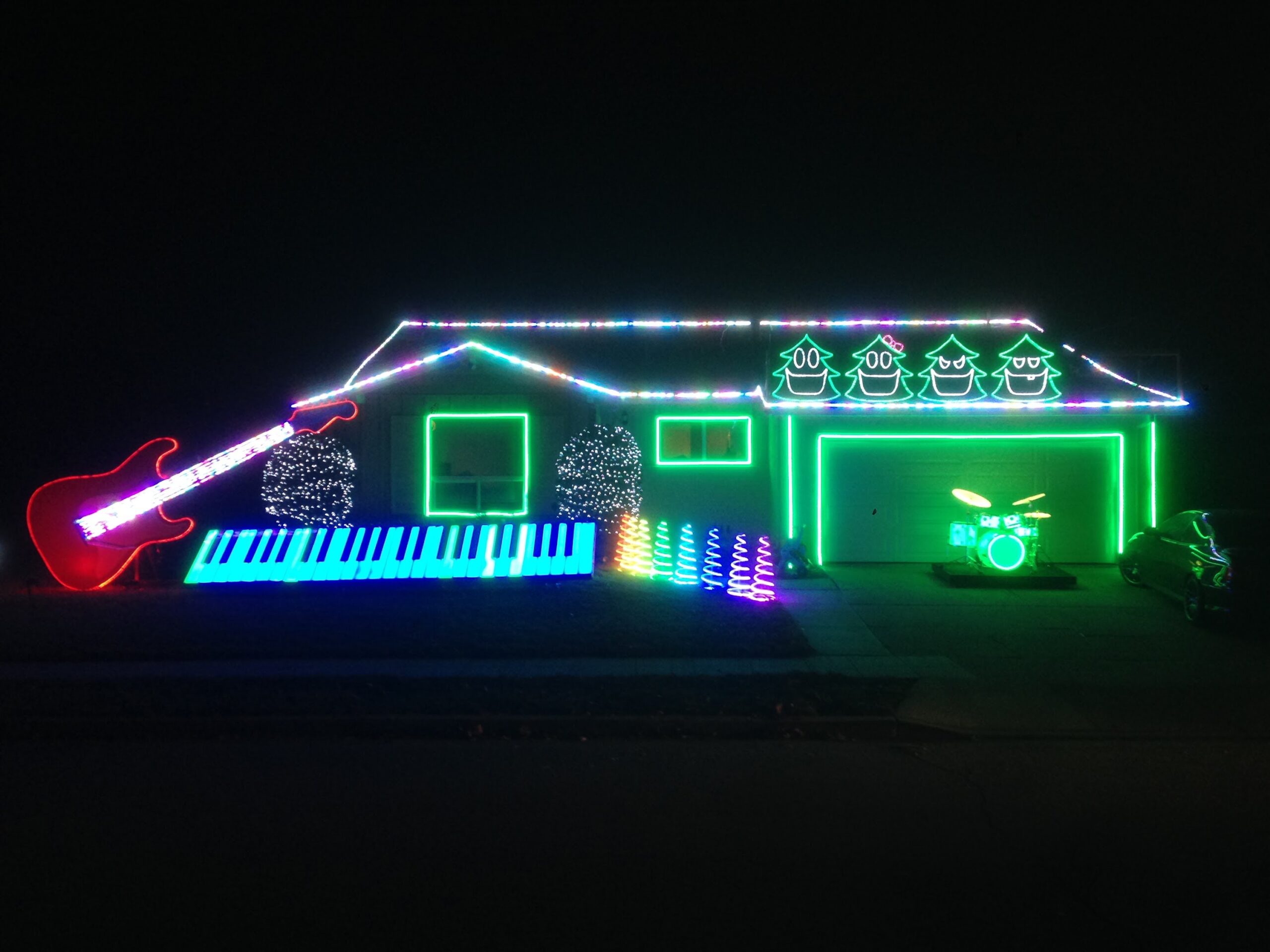 Musik: “Sarajevo (Carol of the Bells)” by Trans-Siberian Orchestra. Hier laufen auf 6,500 Kanälen rund 70,000 Birnen! Adresse: Ecke Lafayette and Ruschin in Newark, Kalifornien!