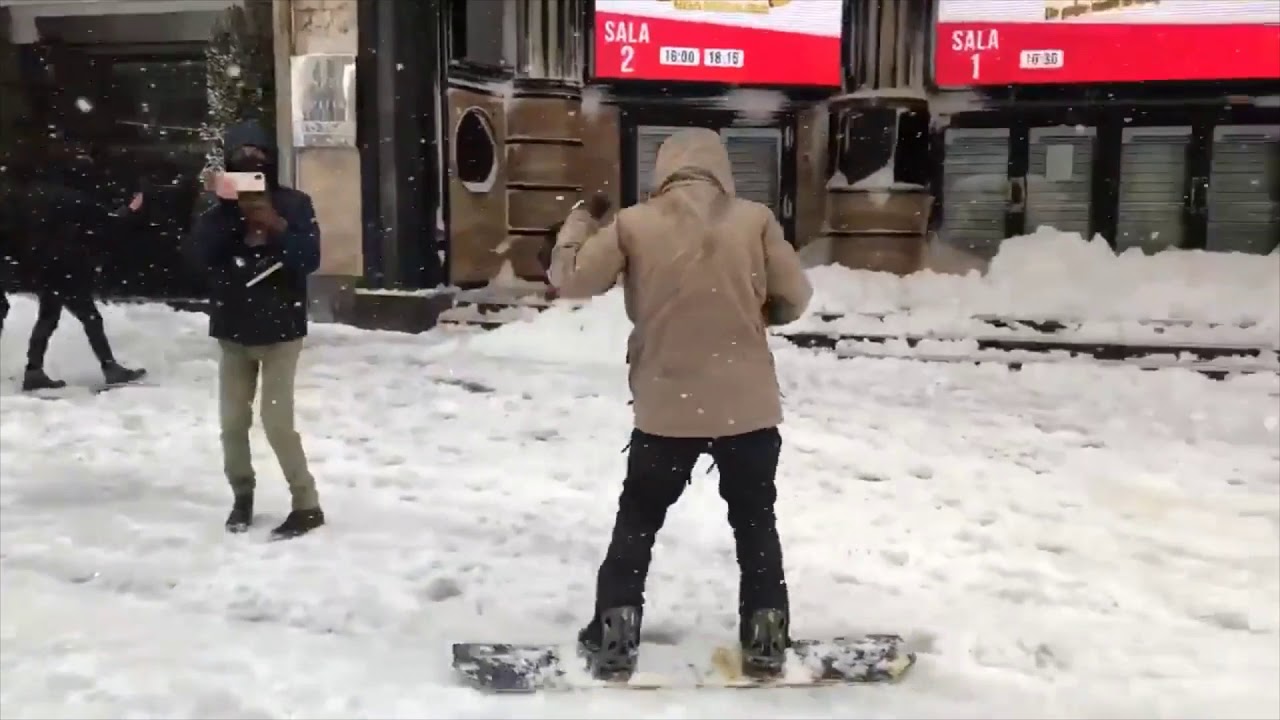 Schnee in Madrid ist selten. Viel Schnee ist in Madrid noch viel seltener. Dieses Video zeigt die Winterfreuden in der spanischen Hauptstadt, die den Menschen gerade in der Corona Pandemie ein bisschen Spass bringen. Ich würde auch gerne mal in der Frankfurter Innenstadt Snowboarden :-)