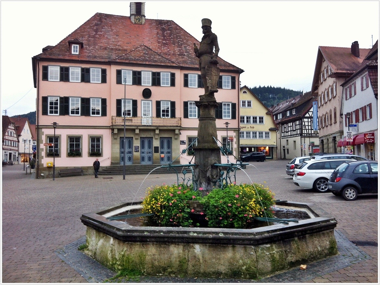 Tag 3: Die letzte Etappe geht von Fichtenberg zurück nach Mainhard. Der Weg verläuft mit nur noch wenigen Steigungen durch eine Flussaue, vorbei an einigen alten Mühlen und hauptsächlich durch den Wald. Die Strecke beträgt wenige 21 Kilometer und so kann man es sehr entspannt angehen lassen. Wir waren auch schon nach 2 Stunden zurück in Mainhardt. Leider mussten wir dadurch fast 3 Stunden auf unser Gepäck warten, welches erst gegen 14 Uhr eingetroffen ist. Unsere eigentlich früher geplante Rückfahrt nach Frankfurt wurde dadurch verzögert. Die Zwangspause nutzten wir, um uns den historischen Ortskern von Mainhardt – mittlerweile etwas ungewohnt – zu Fuß anzusehen. Zu bewundern gibt es hier das Mainhardter Schlösschen.