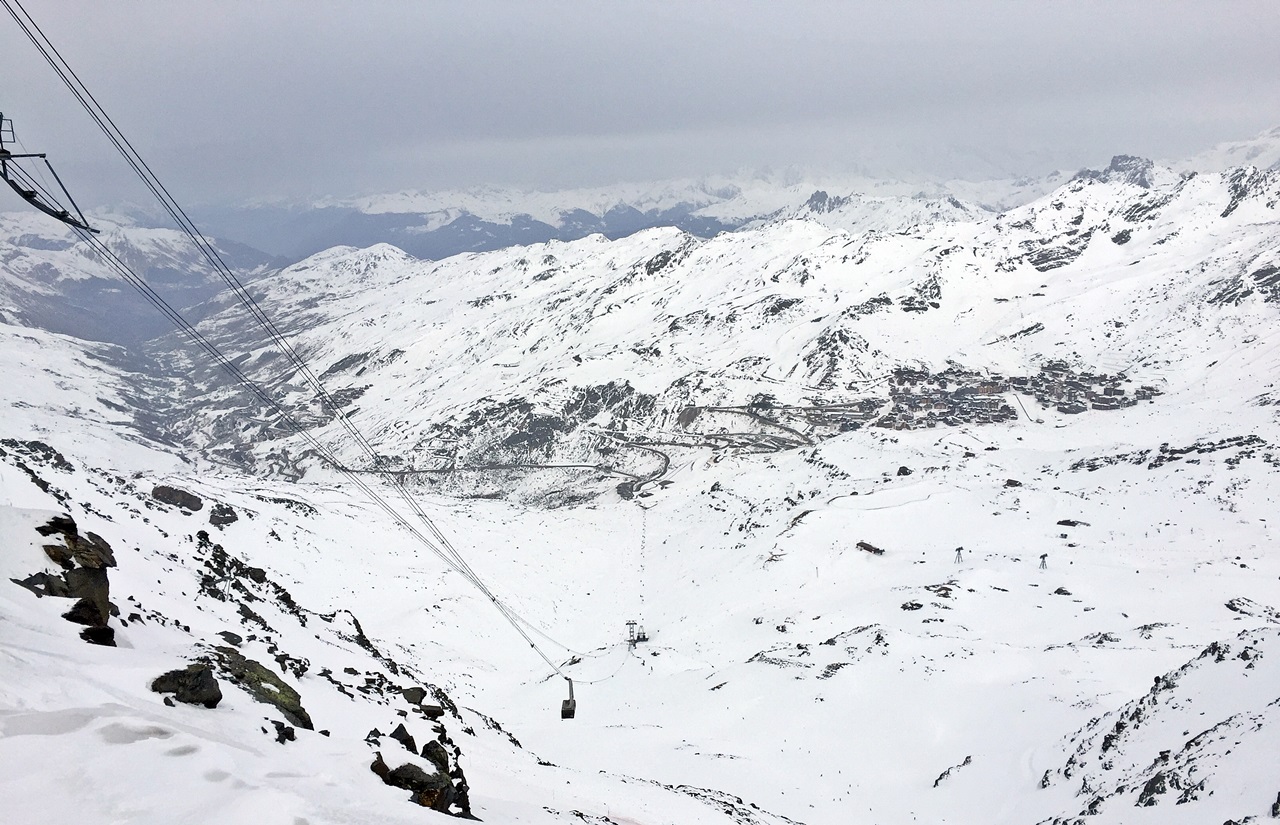 Val Thorens ist eine reine Feriensiedlung mit mehrstöckiger Appartmentbebauung. Der Ort wurde in den 1970er Jahren auf dem Reißbrett geplant und so kann man sich vorstellen wie heute die meisten Gebäude noch aussehen. Mal von diesen Nachteilen im Ambiente abgesehen ergeben sich dafür aber auch eine Reihe von